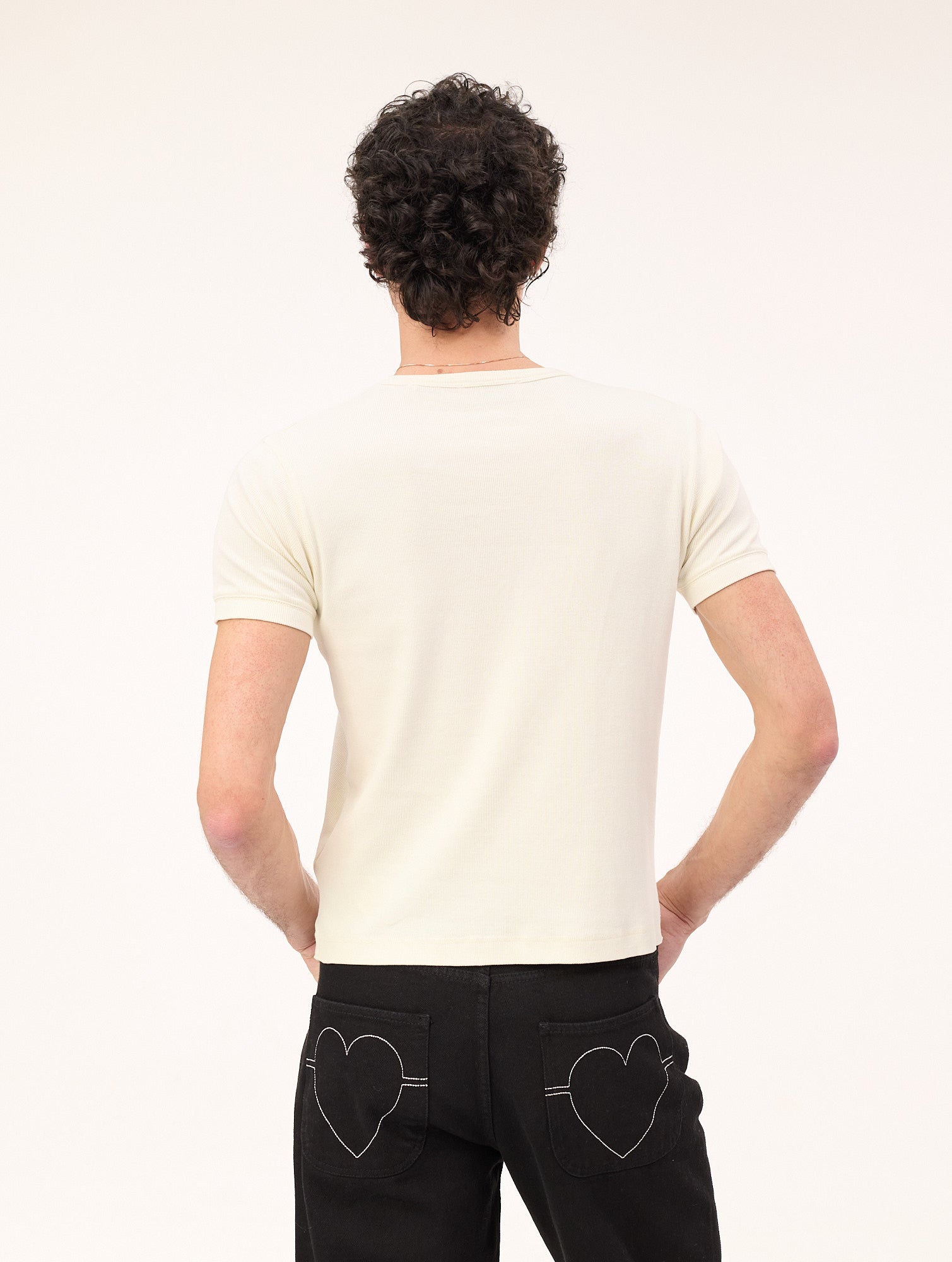 - Boxy-fit short sleeve T-shirt in 97% Cotton, 3% elastane with a matte front graphic print.