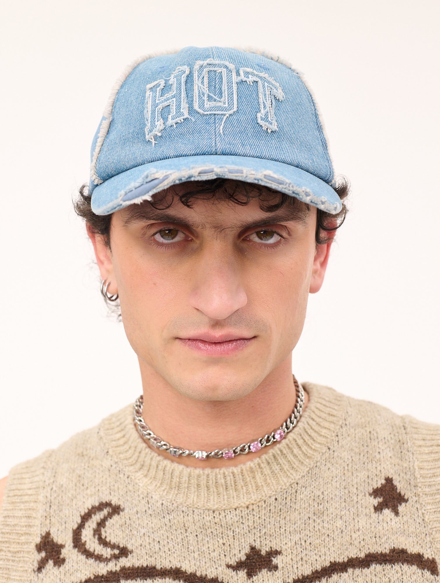 - Frayed Cap in 96% Cotton, 4% Spandex with a front graphic