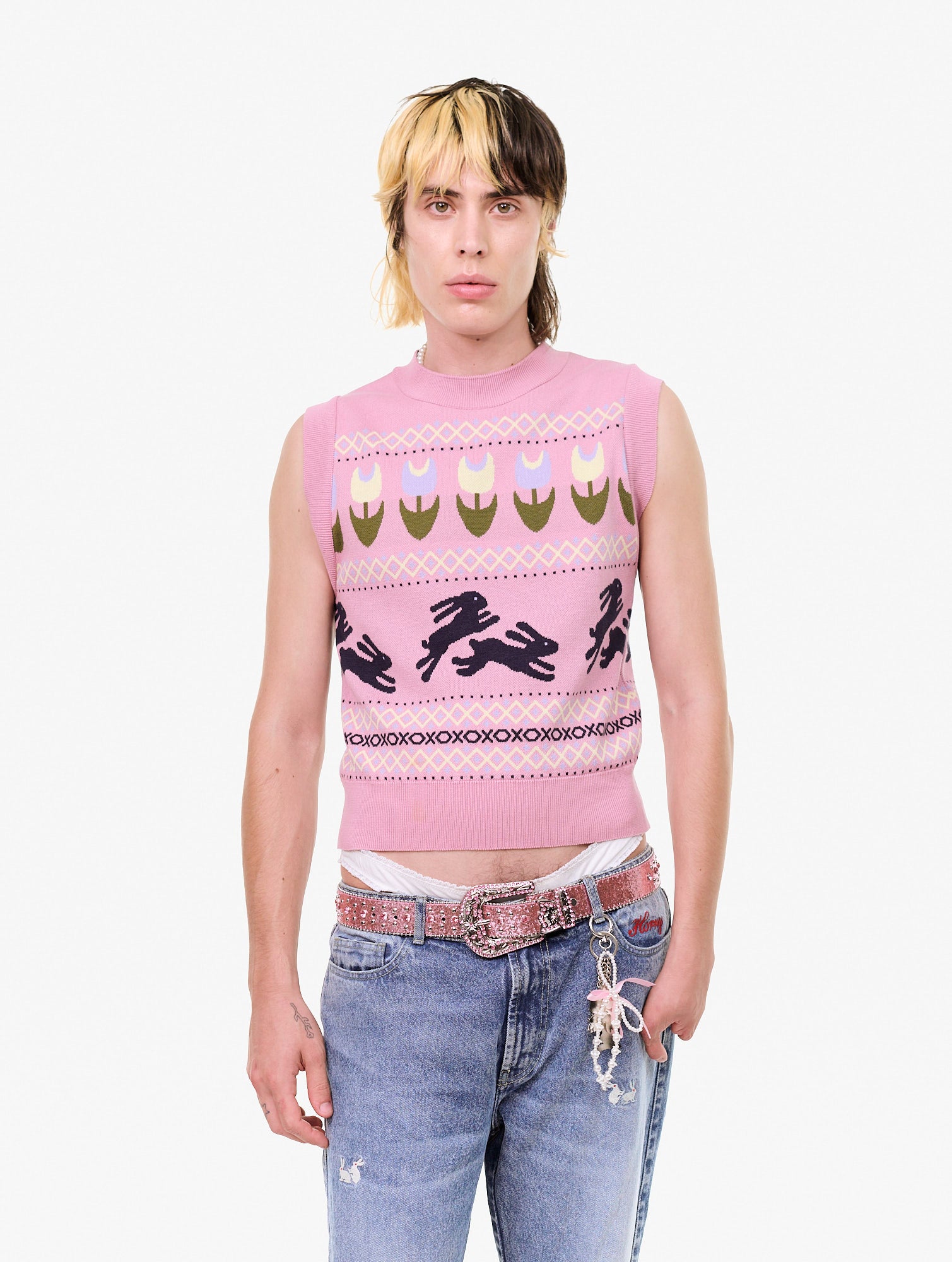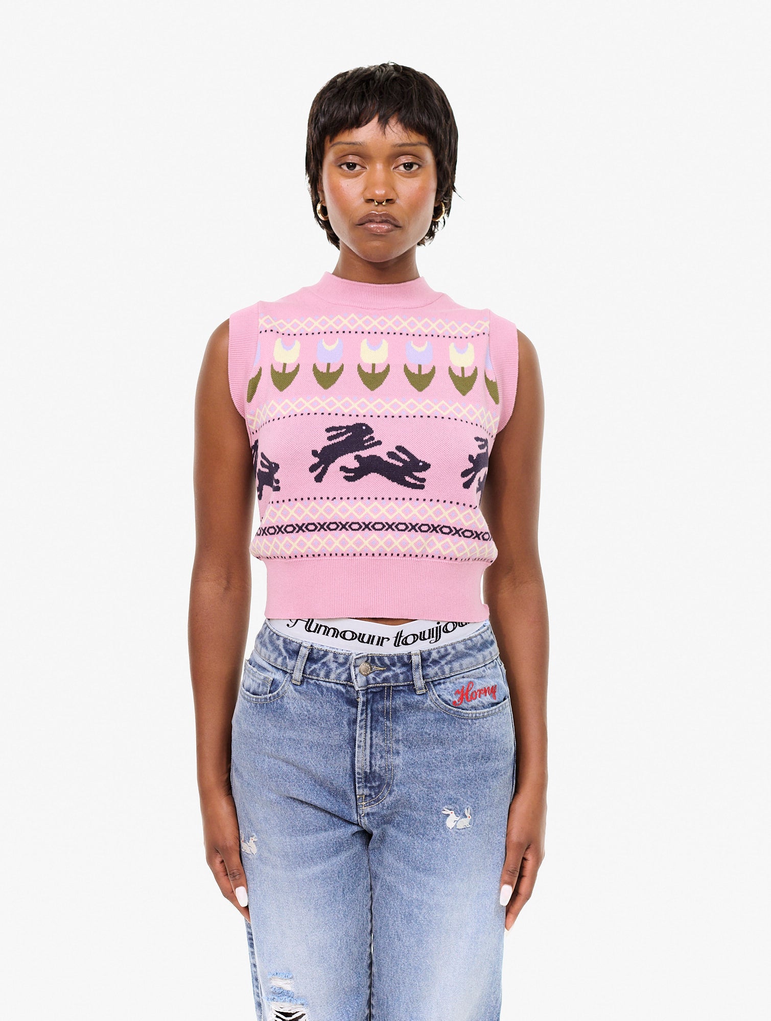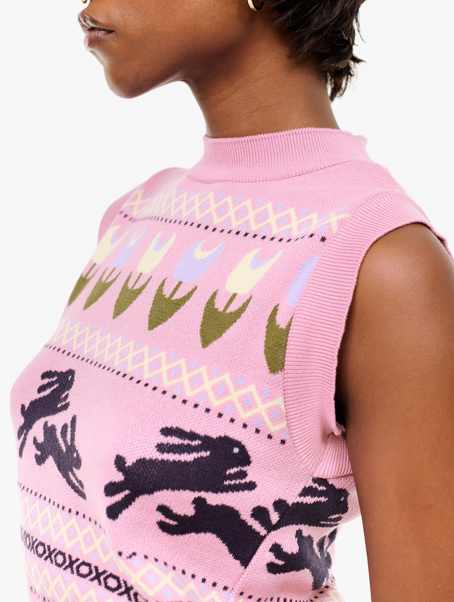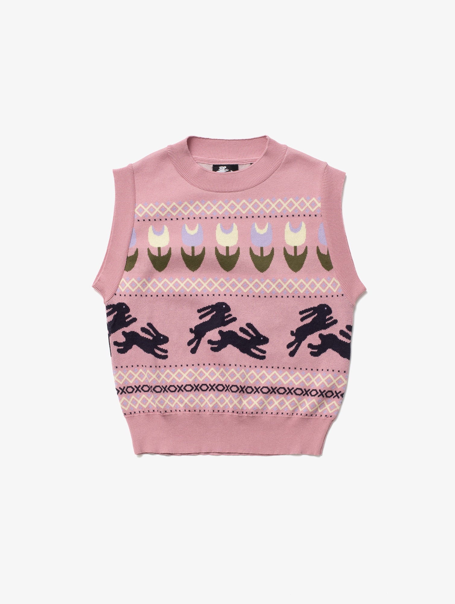 Knitted vest with an allover jacquard graphic. 100% Cotton.