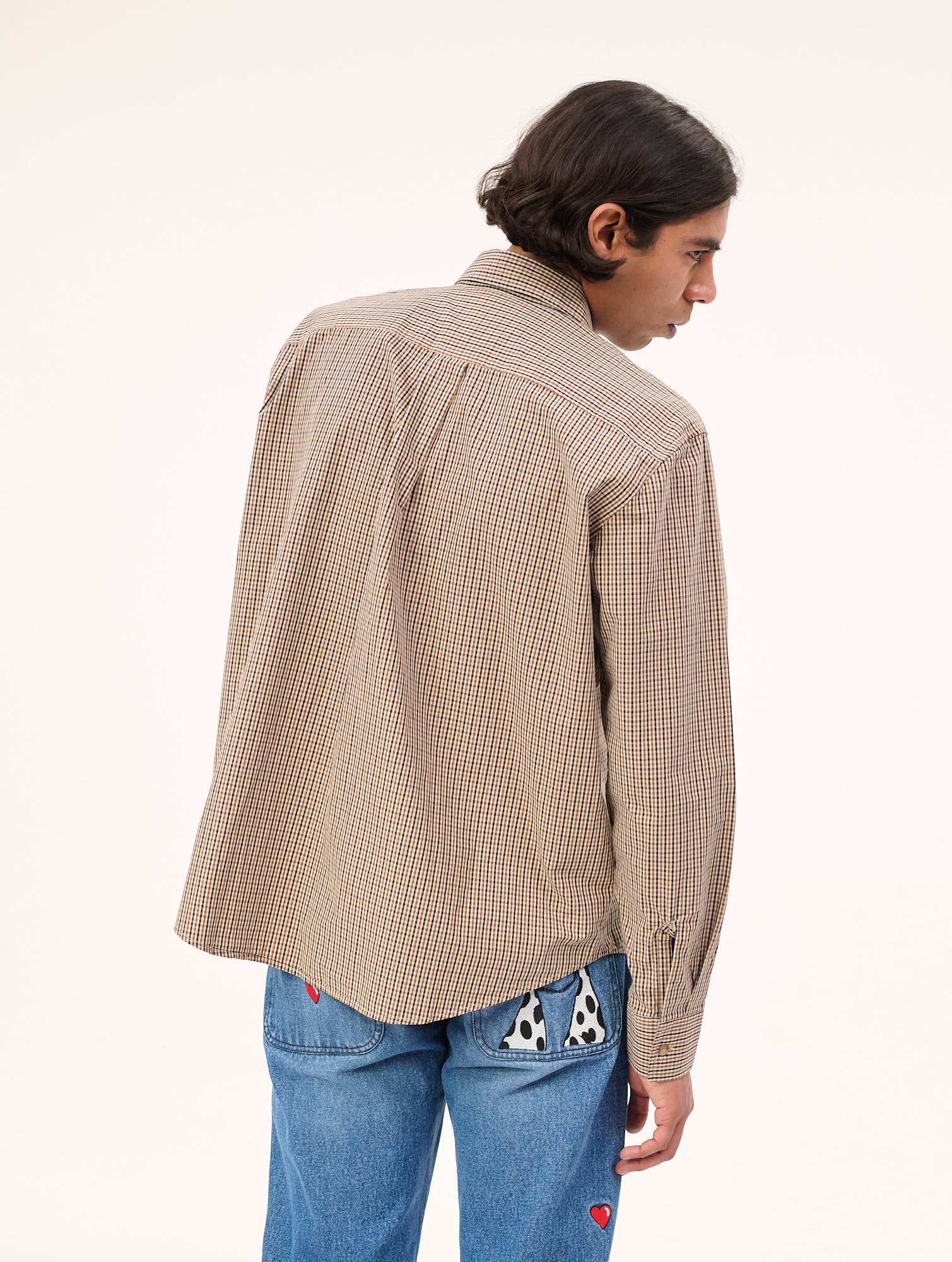 - Light-weight button-up check Shirt in 100% vichy cotton featuring patch details on the front.