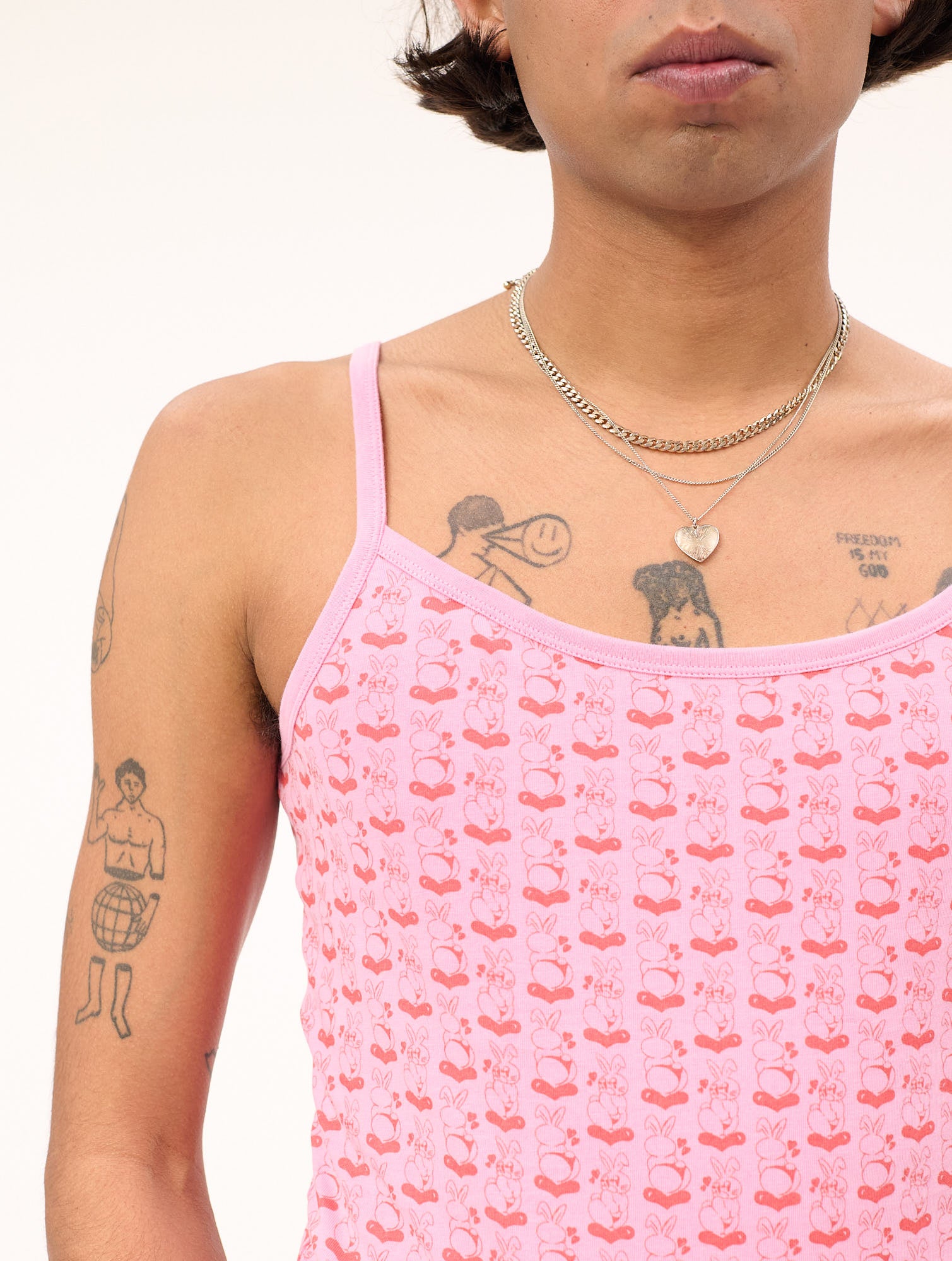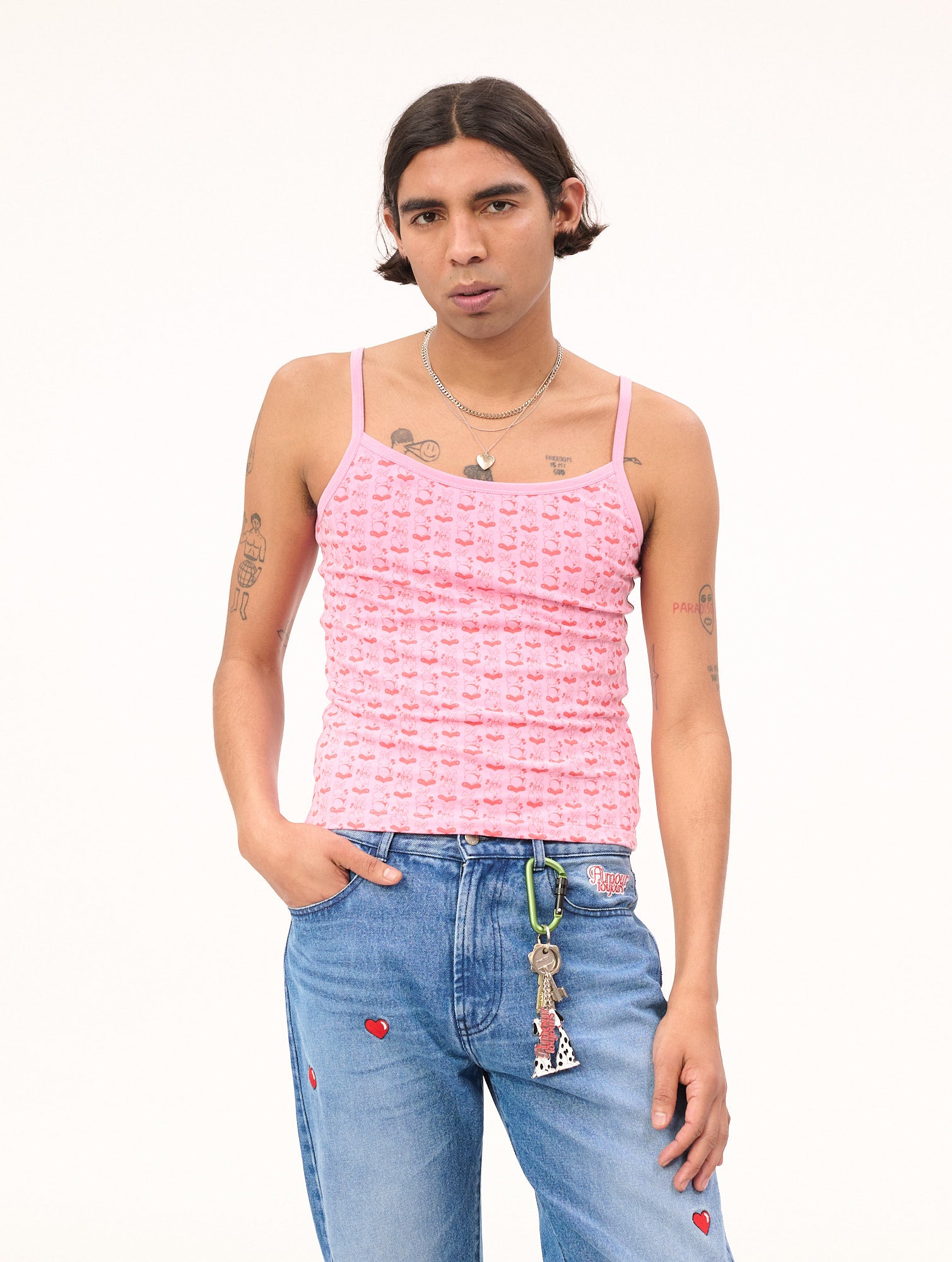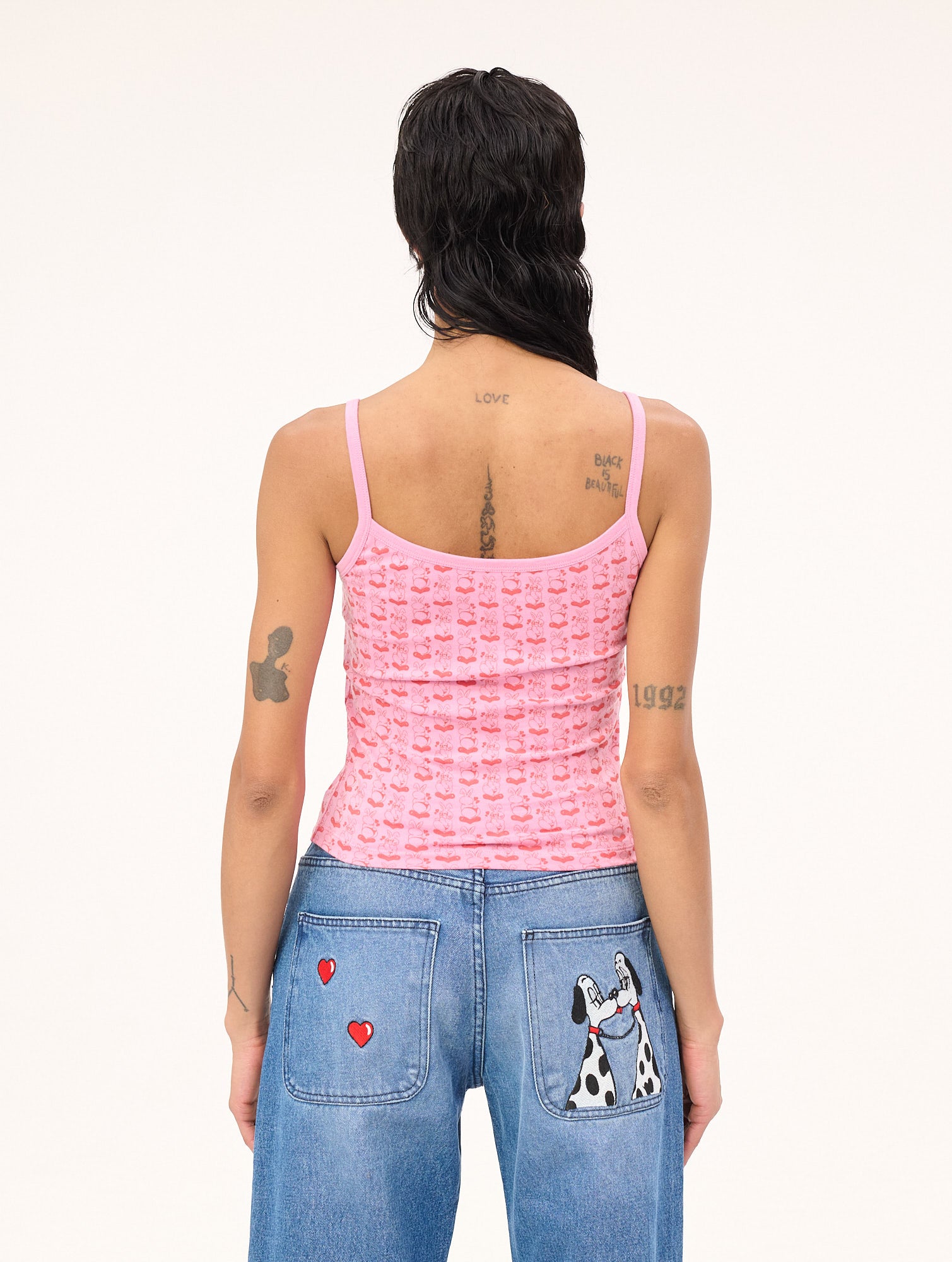 - 全体にマットなグラフィックプリントが施された、綿100%のキャミソールトップ。