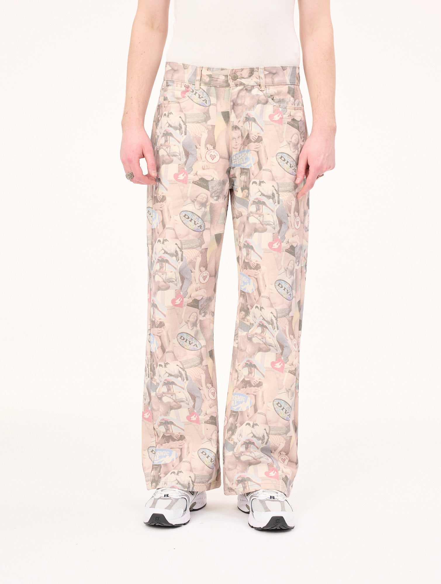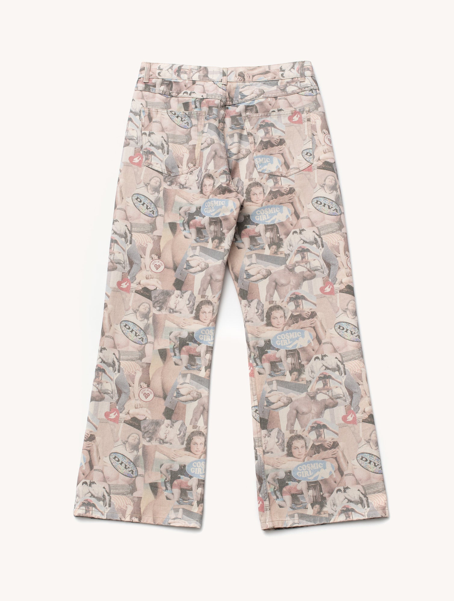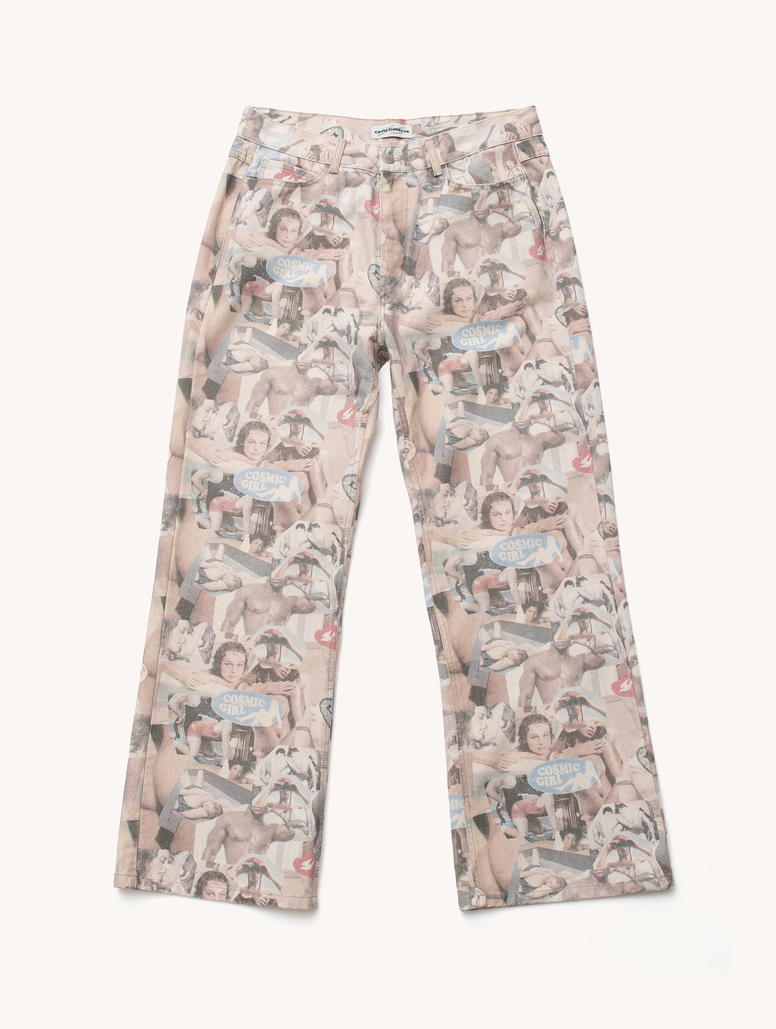 - Denim Trousers in 100% cotton with an allover graphic print.
