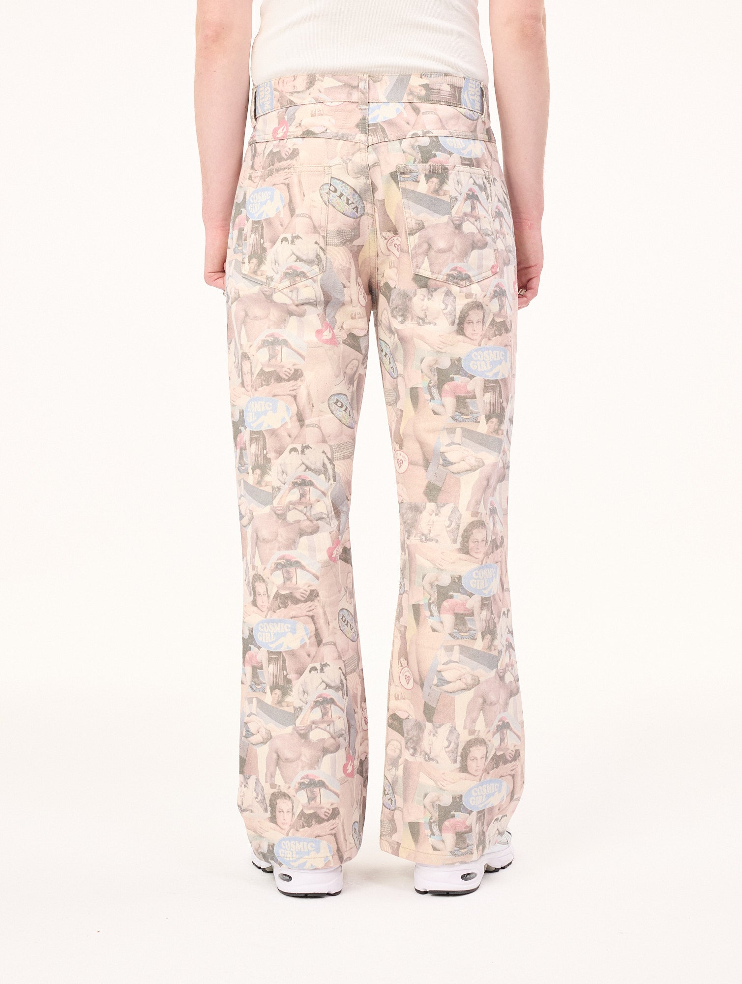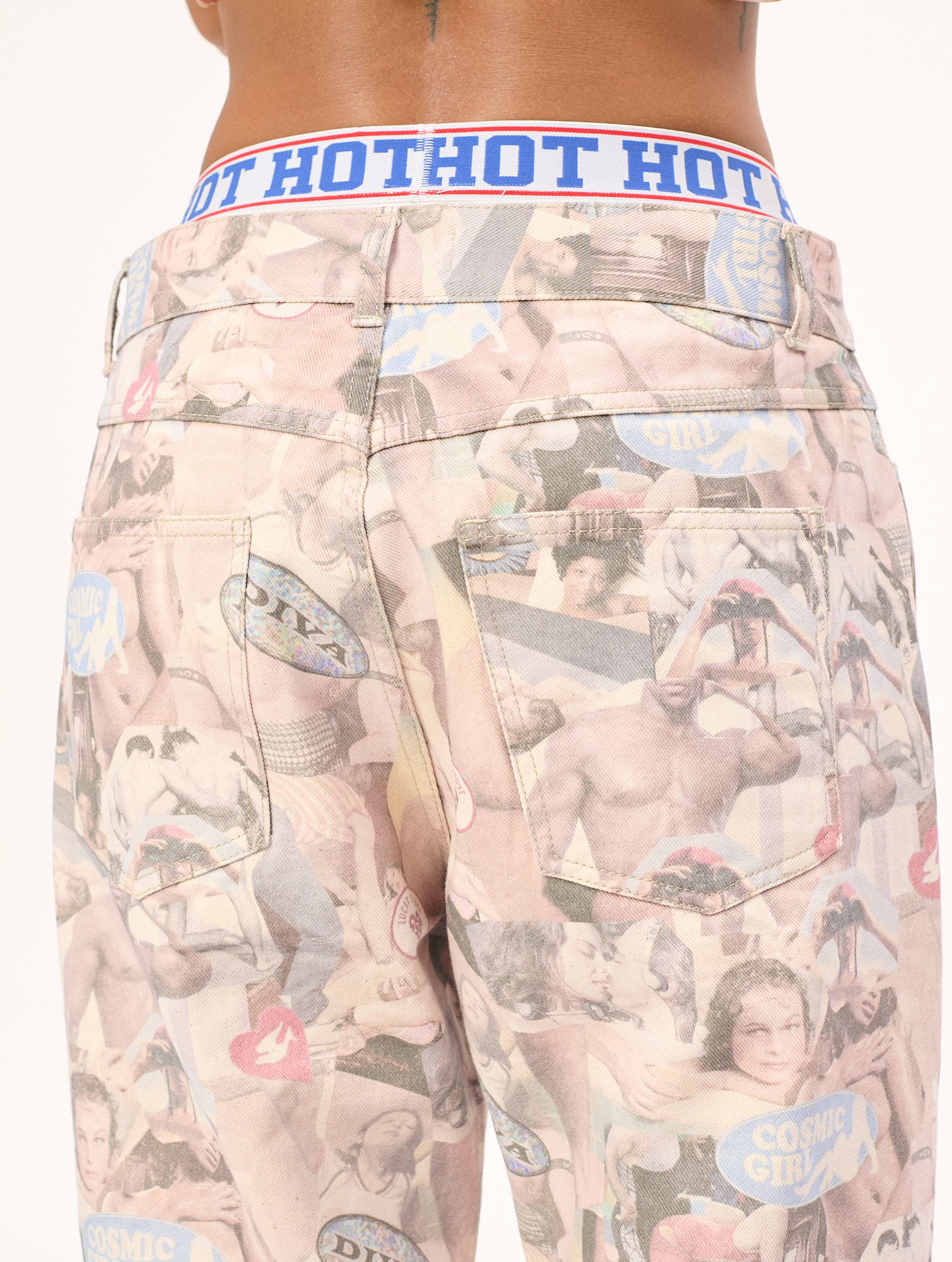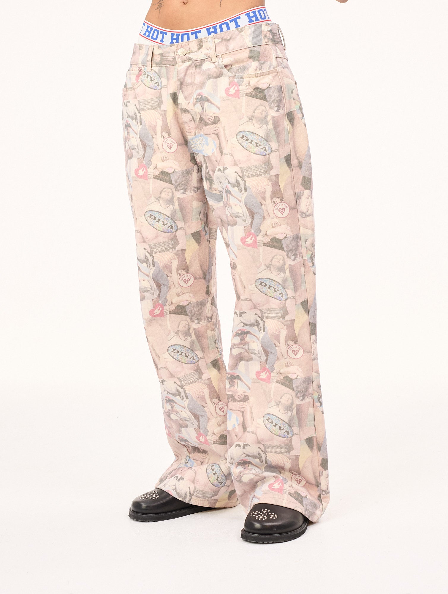 - Denim Trousers in 100% cotton with an allover graphic print.