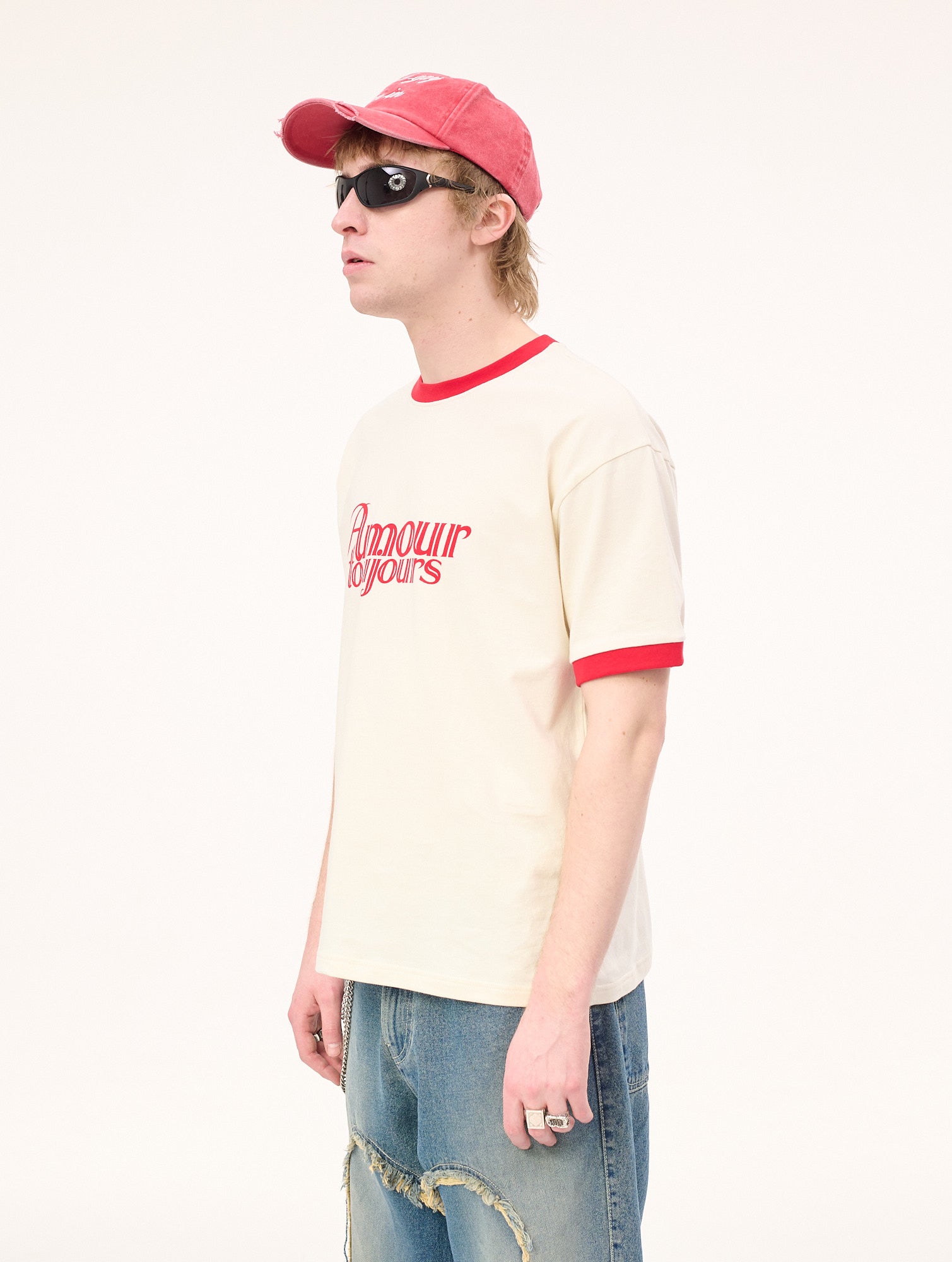 - Ringer short sleeve T-shirt in 100% organic cotton with a matte front graphic print.