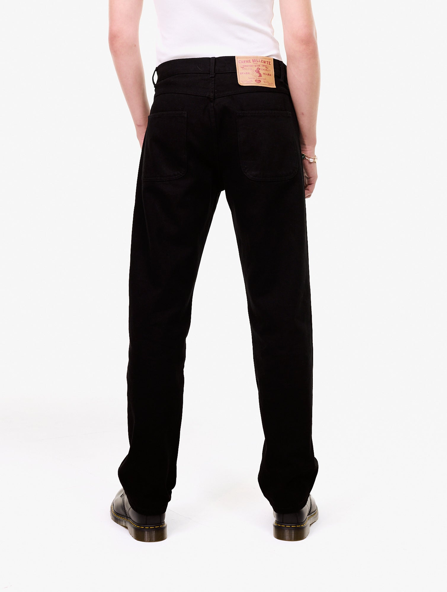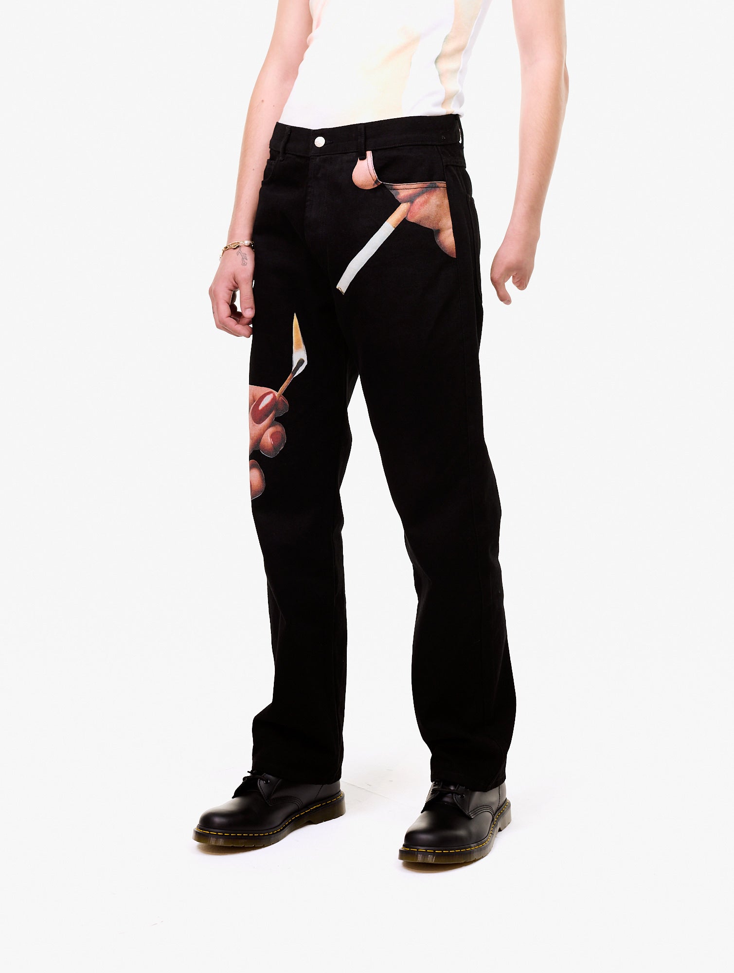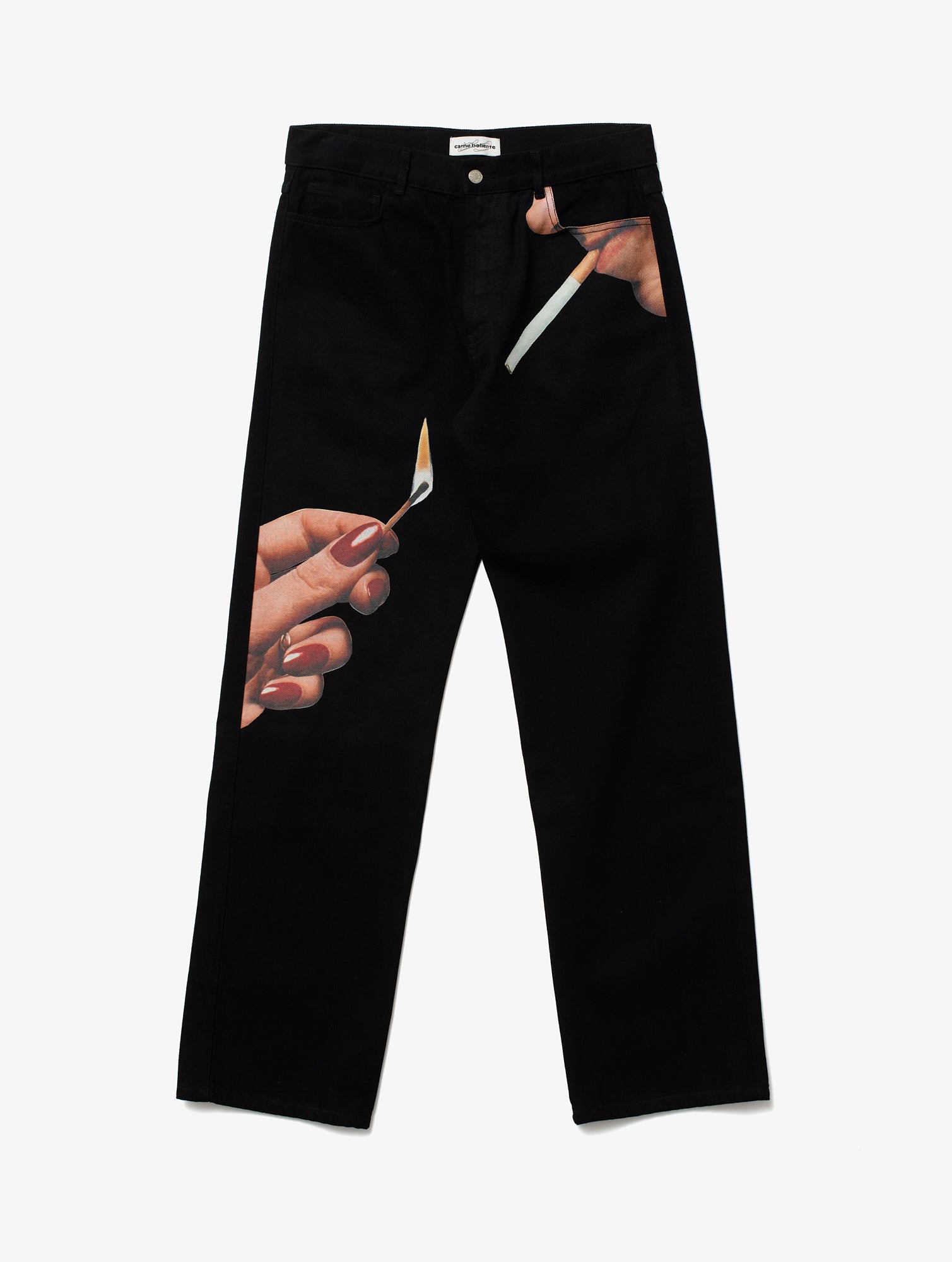 Straight denim trousers. with an allover graphic print on the front. 100% Organic Cotton.