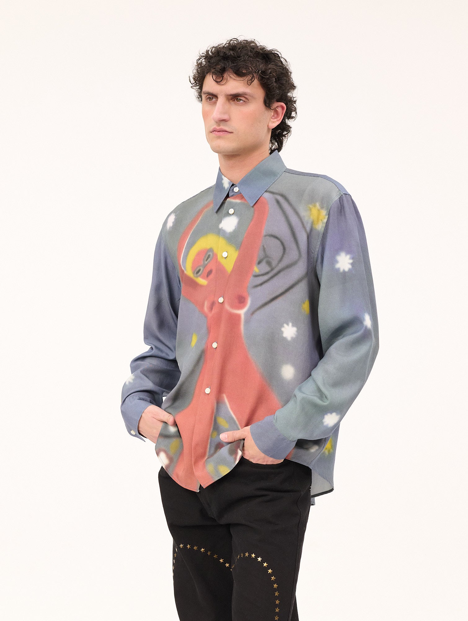 - Light-weight button-up Shirt in 100% tencel with an allover matte graphic print.