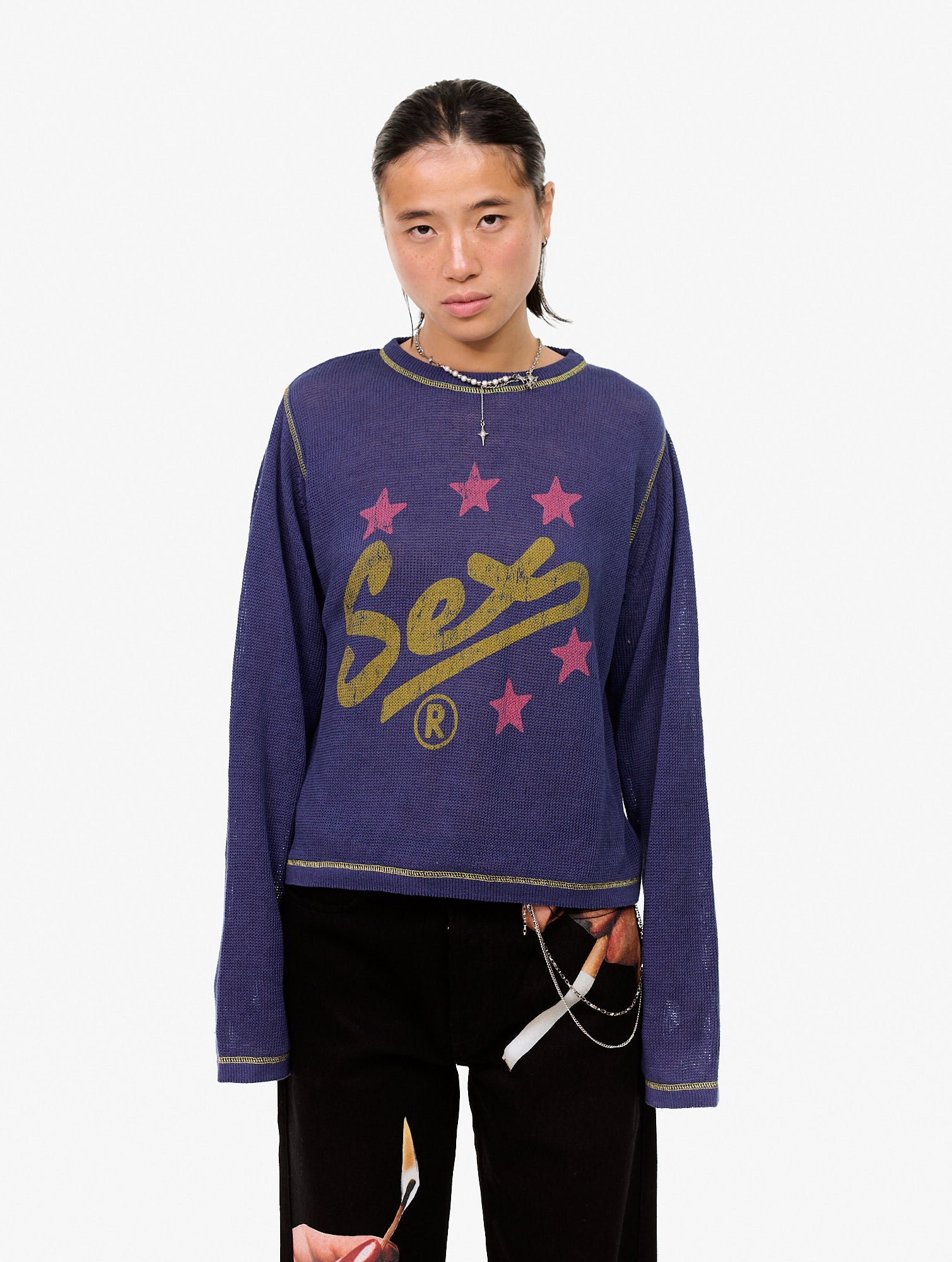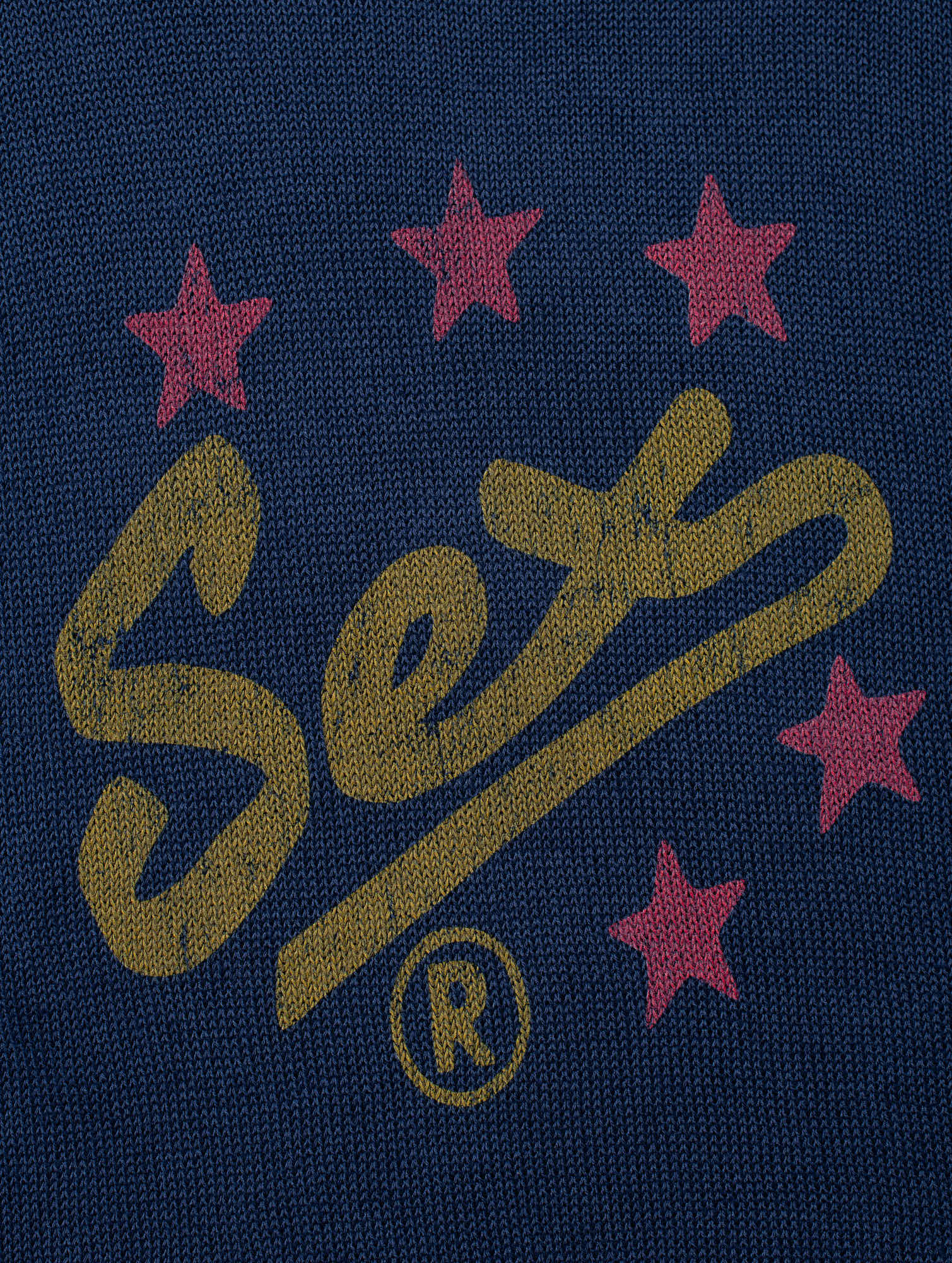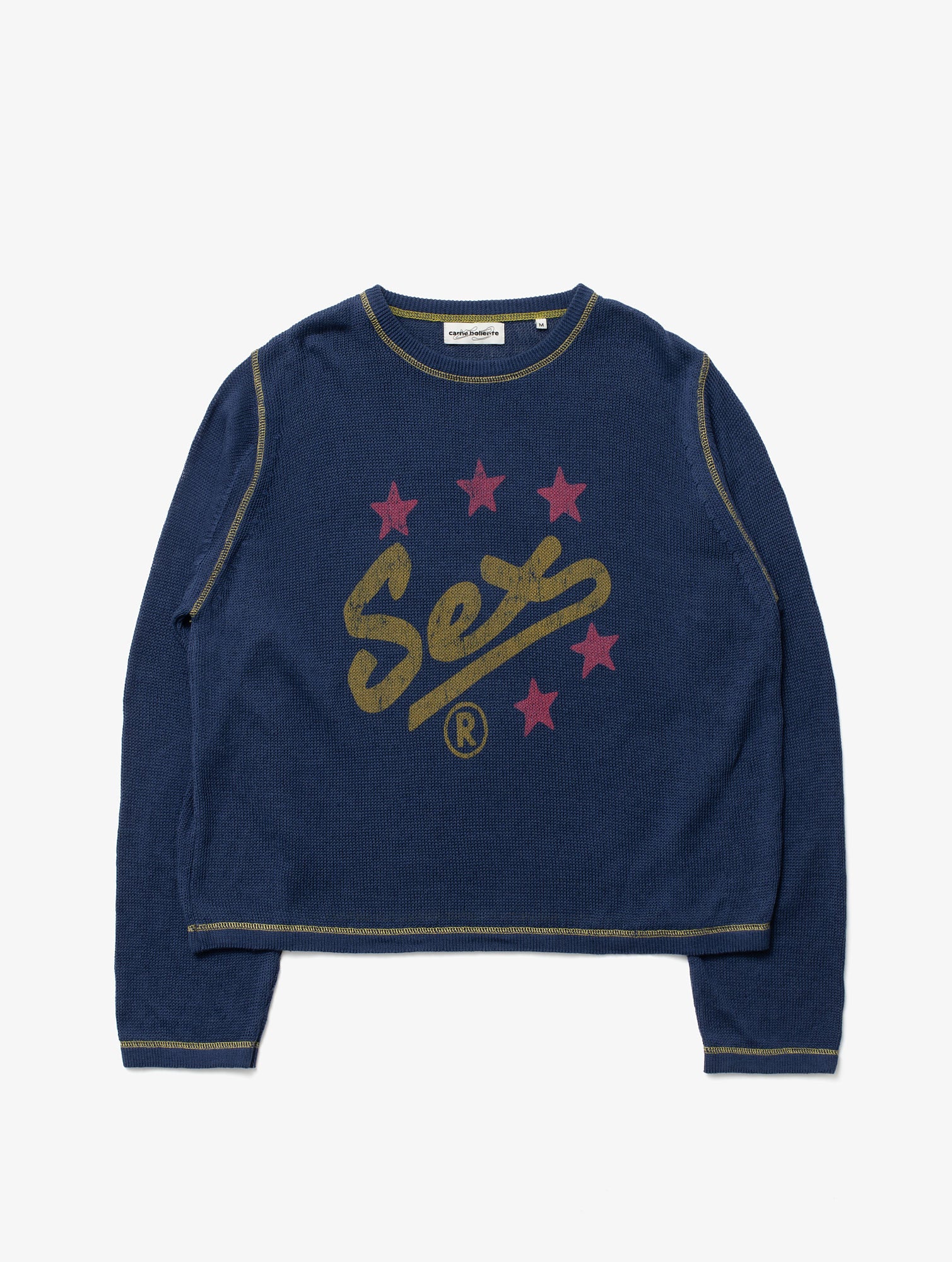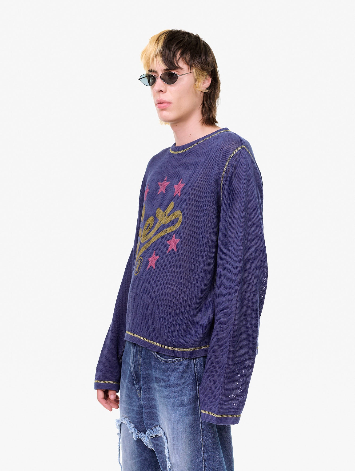 Knitted sweater. with a front graphic print. 75% Linen, 25% CO.