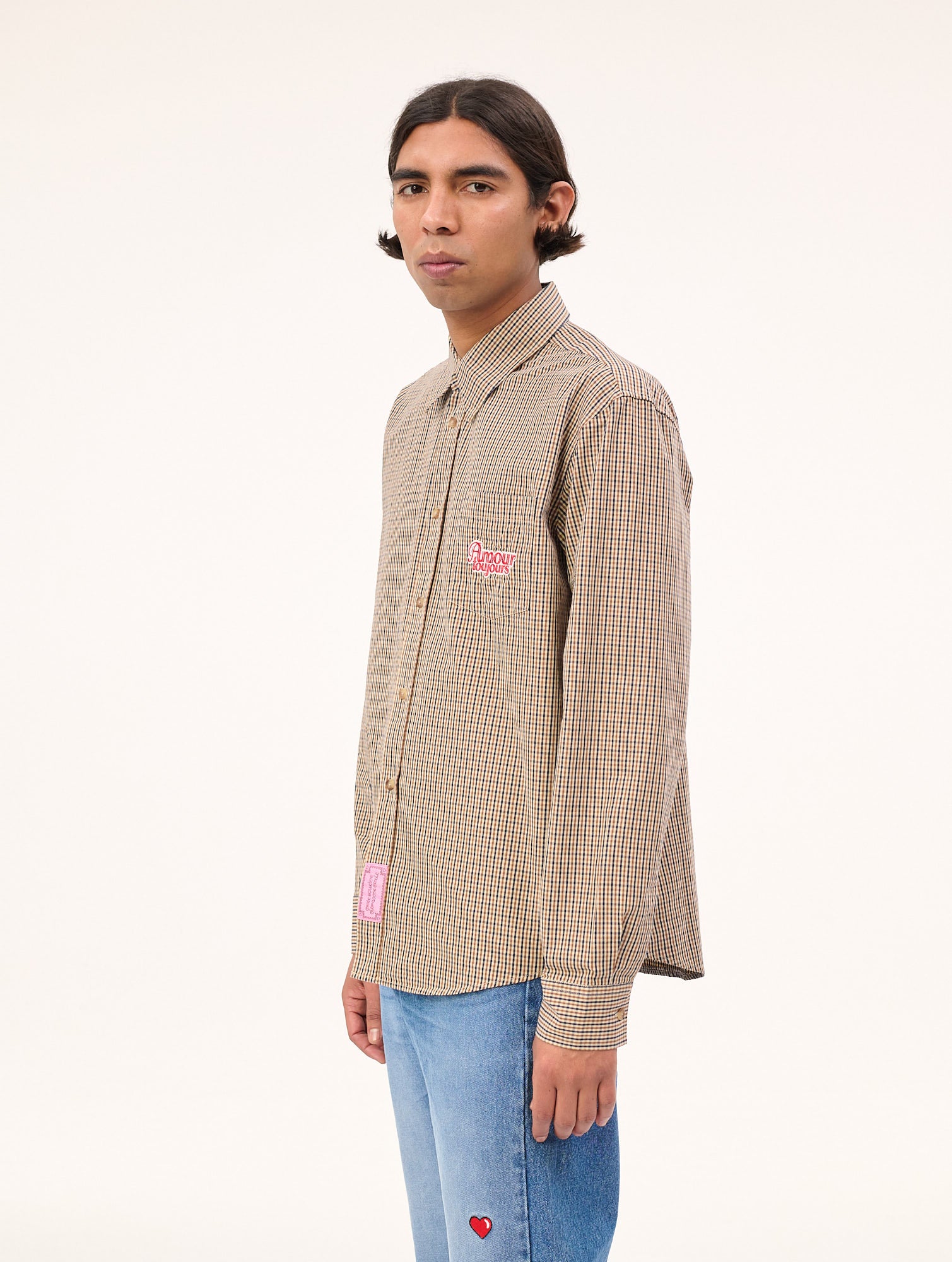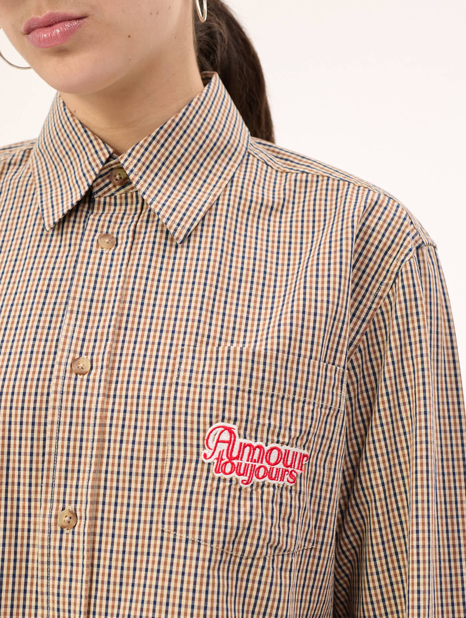 - Light-weight button-up check Shirt in 100% vichy cotton featuring patch details on the front.