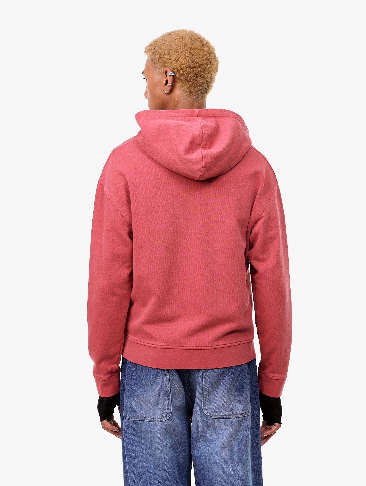 Zipup hoodie. with front fleece graphic patches and two side pockets. 100% Organic Combed Cotton.